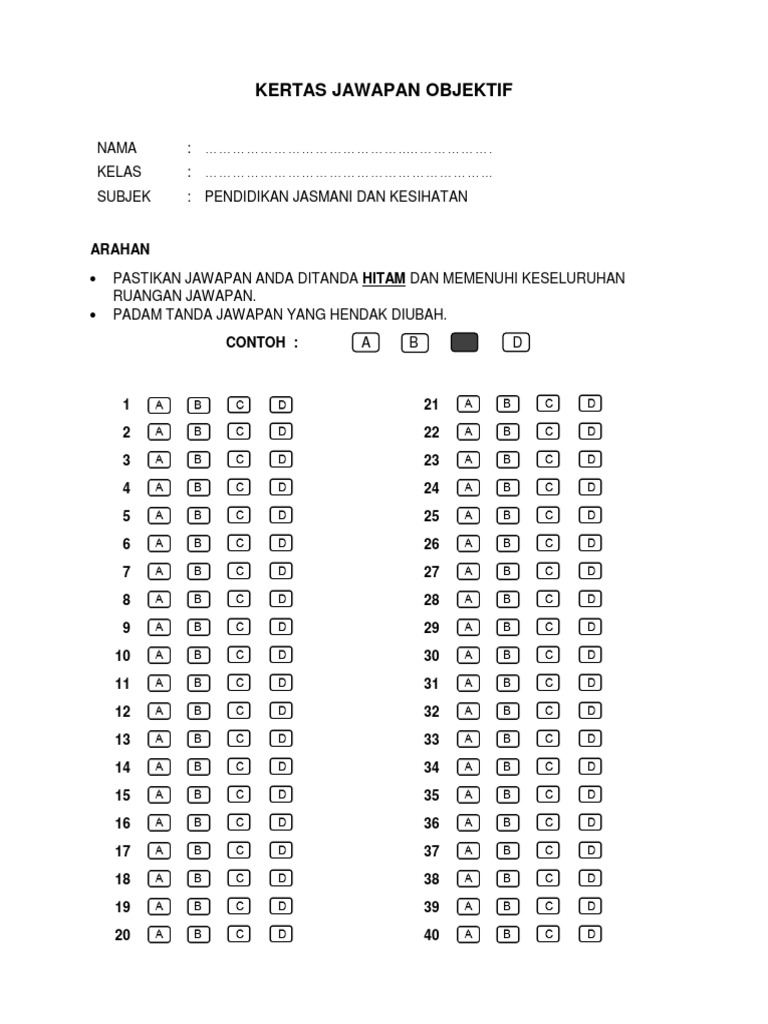 Kertas Jawapan Objektif 40 Soalan from reader015.docslide.net And then dia suruh masuk bilik peperiksaan. Jangan lupa sertai kami di telegram facebook. Hg2cl20) + 2e 2hg(c) + zcf. 6 downloads 60 views 111kb size. Ukuran kertas a3 adalah ukuran kertas standar internasional berdasarkan iso dalam satuan mm (milimeter) dan bisa dikonversi menjadi satuan cm (centimeter). 20 soalan di instagram ( @hafizalasmar_official ). Markah akan ditolak sebanyak 0.25 untuk setiap jawapan yang salah dijawab. Jika jumlah alatulis yang dijual oleh faiz ialah 6 700, berapa banyakkah pembaris yang telah dijual oleh nya.?